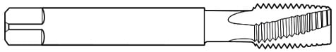 Sporene i tappen holder på en del av skjæresponet. Spon fjernes bare delvis ved gjenging. Anbefales ikke å bruke denne typen ved dype hull. |