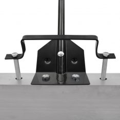 Hurtig utløsningsmekanisme montert på feiebakken – trekk i håndtaket og materialet slippes.