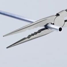 Lang nebbtang med tverrgående profiler egner seg meget godt til å gripe og holde noe på vanskelige steder. Spesielt i et motorrom vil denne tangen gjøre livet mye enklere.