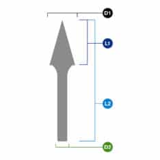 Roterende fil (Double Cut) gir rask fjerning av materiale. Den fine tannoverflaten gir fine og korte spon som gir høy kontroll og flott overflatefinish.